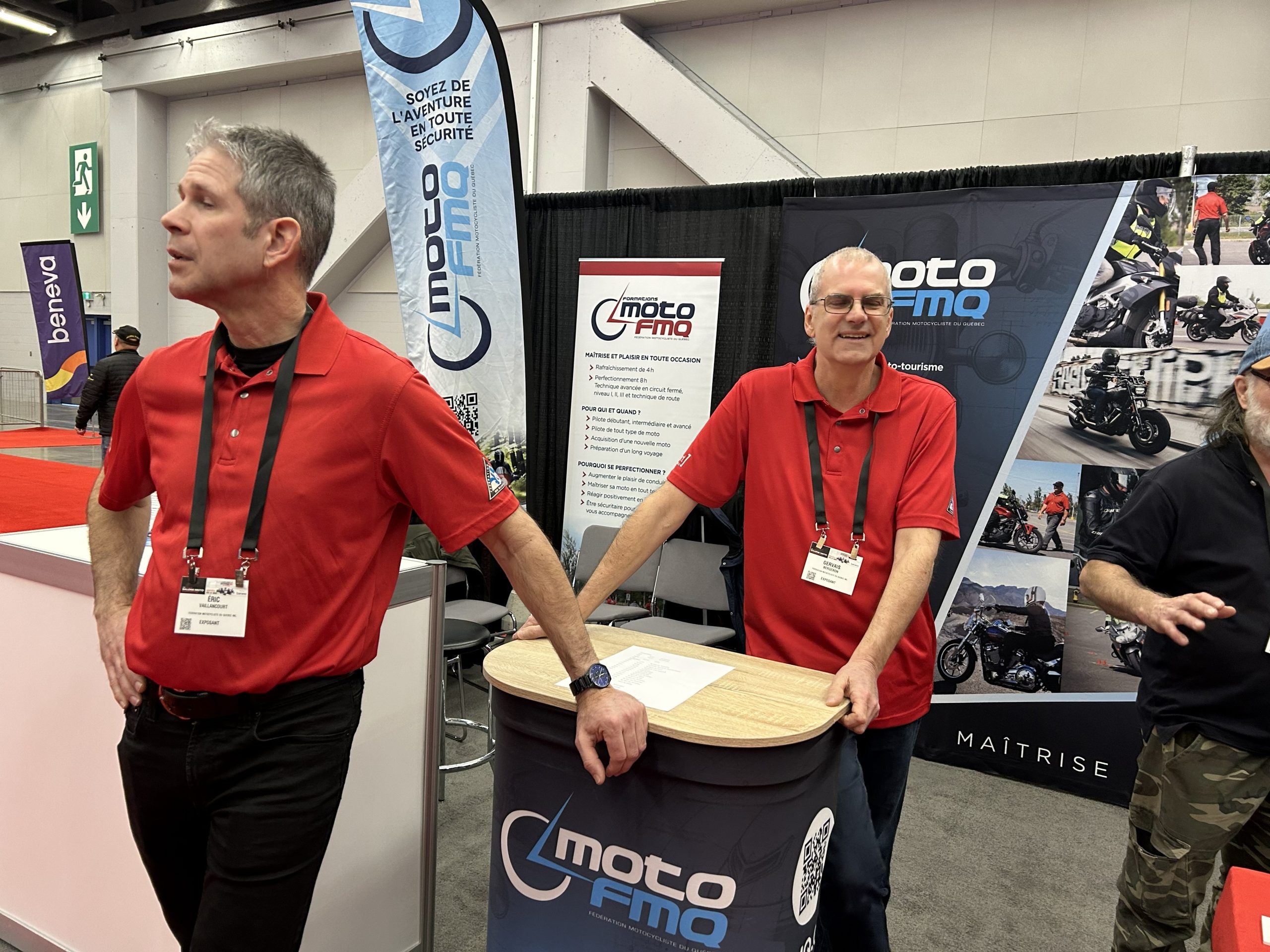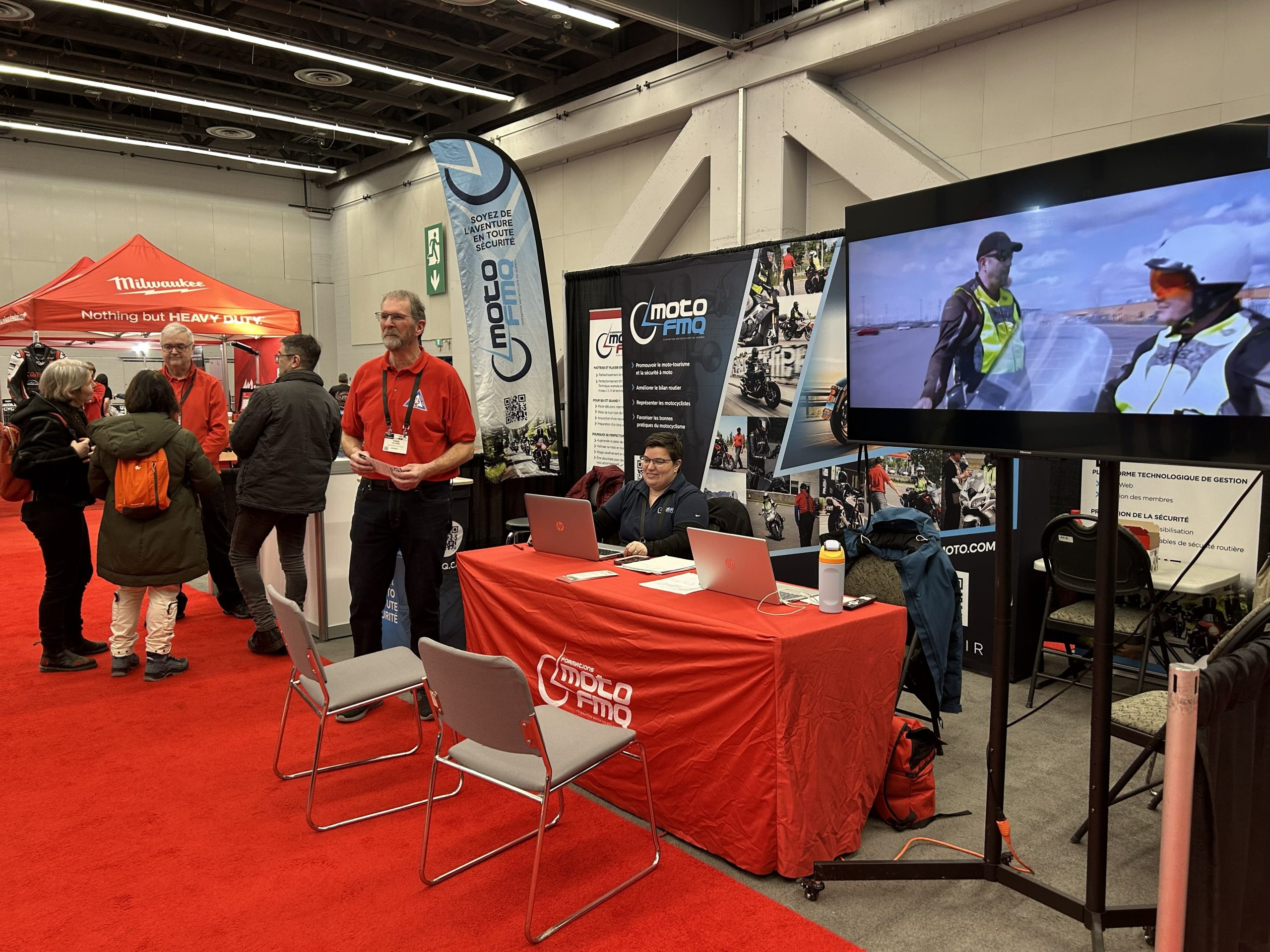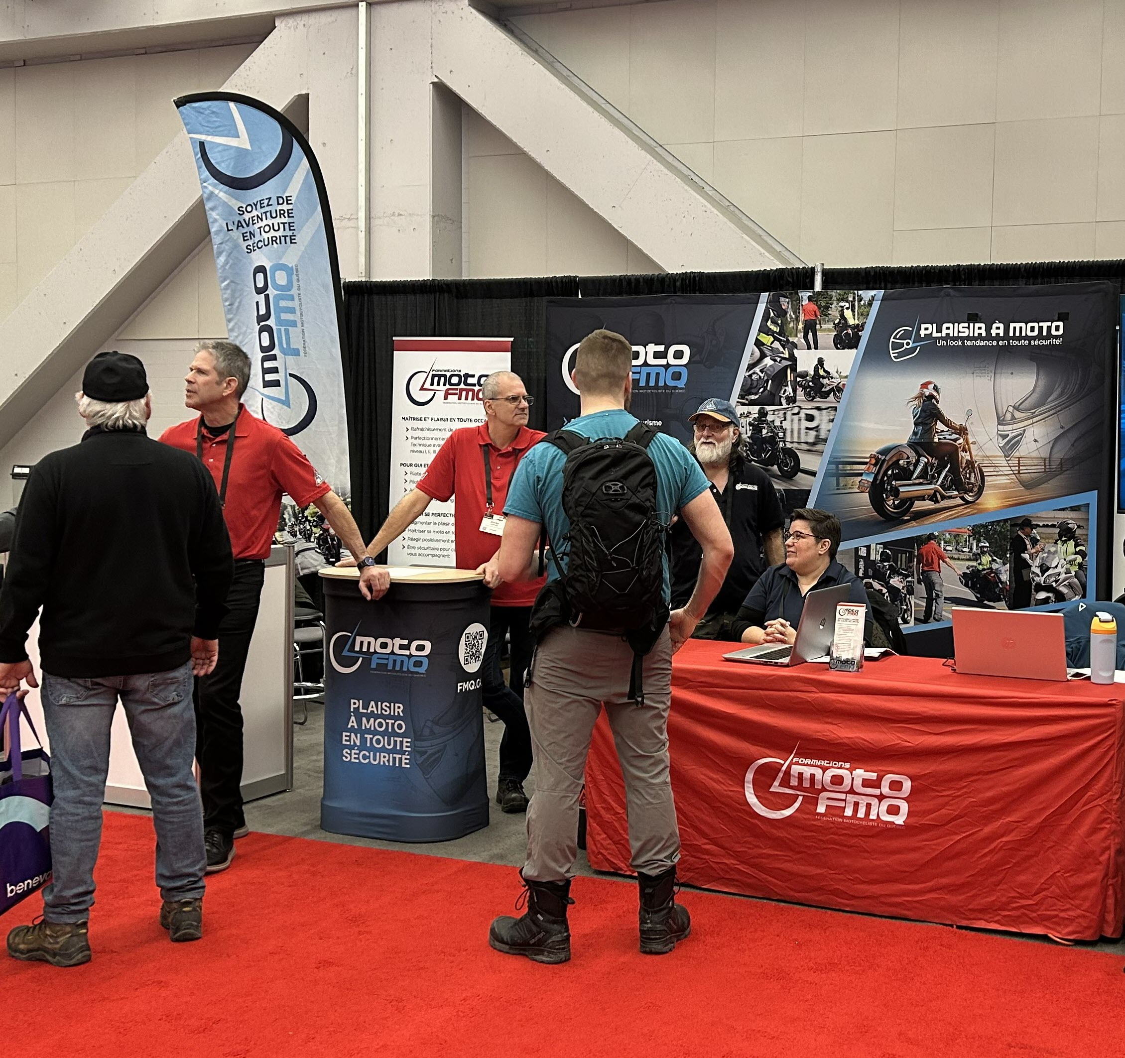 Nos moniteurs certifiés MOTO PRO FMQ ont accueilli les visiteurs pour répondre à leurs questions, et notre équipe FMQ était disponible pour prendre les inscriptions aux formations et les adhésions aux associations.