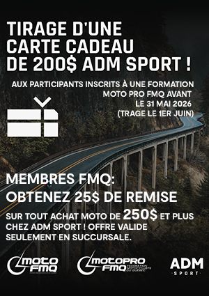 Si une association/région affiliée à la FMQ désire organiser un cours Moto Pro 1 pour un groupe de 12 personnes, communiquez avec nous pour réserver votre date et établir la tarification.